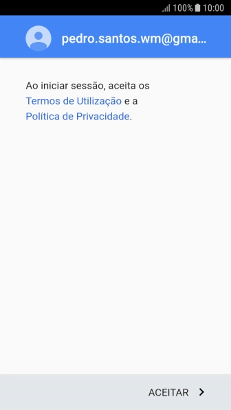 Prima ACEITAR e siga as indicações no ecrã para escolher as definições da conta Google.