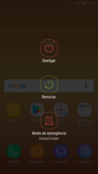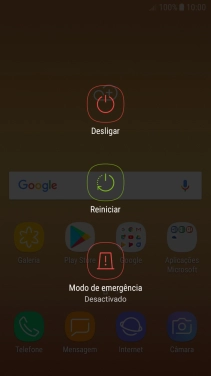Mantenha premido o botão de ligar/desligar até aparecer um menu no ecrã.