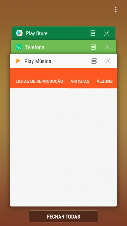 Para terminar todas as aplicações em curso, prima FECHAR TODAS.