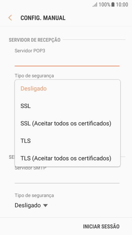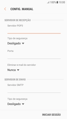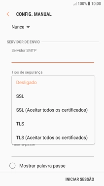 Prima o campo sob "Servidor SMTP" e introduza o nome do servidor de envio do fornecedor de e-mail.