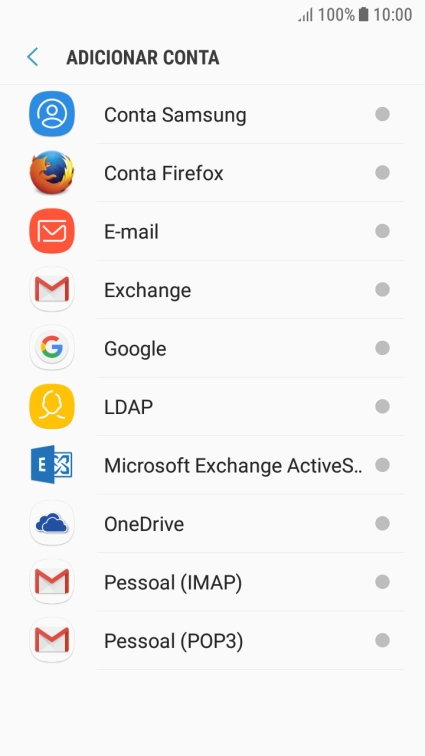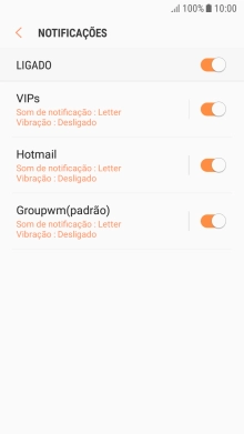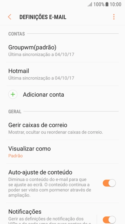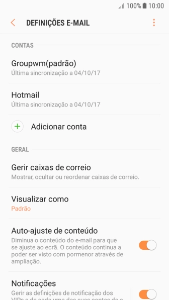 Prima o indicador junto à conta de e-mail pretendida para ativar ou desativar a função.