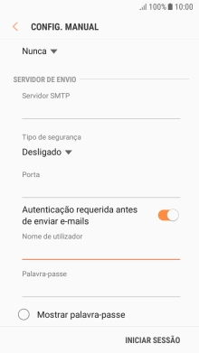 Prima o indicador junto a "Autenticação requerida antes de enviar e-mails" para ativar a função.
