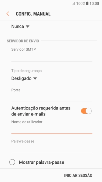 Prima o campo sob "Palavra-passe" e introduza a password do servidor de envio do seu fornecedor de e-mail.