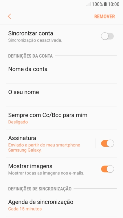 Prima o indicador junto a "Sincronizar conta" para ativar a função.