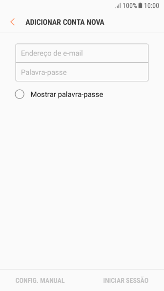 Se o ecrã mostrar esta imagem, a sua conta foi identificada e configurada automaticamente. Siga as indicações no ecrã para introduzir informações adicionais e concluir a configuração.