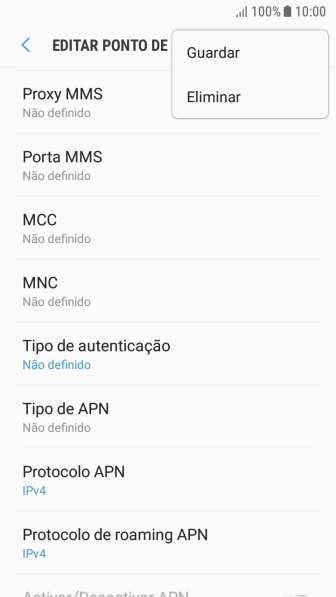 12. Escolha o tipo de nome do ponto de acesso (APN)
