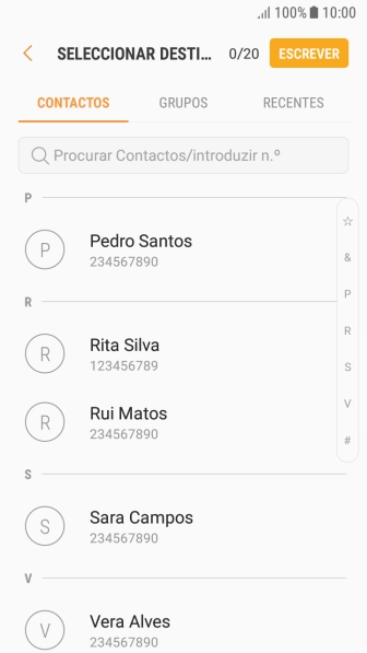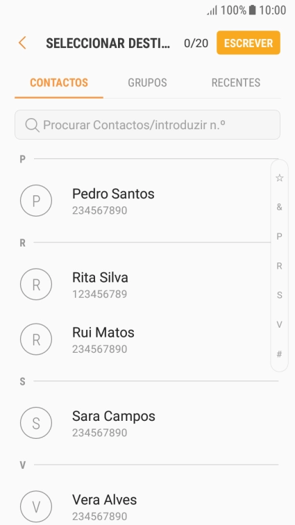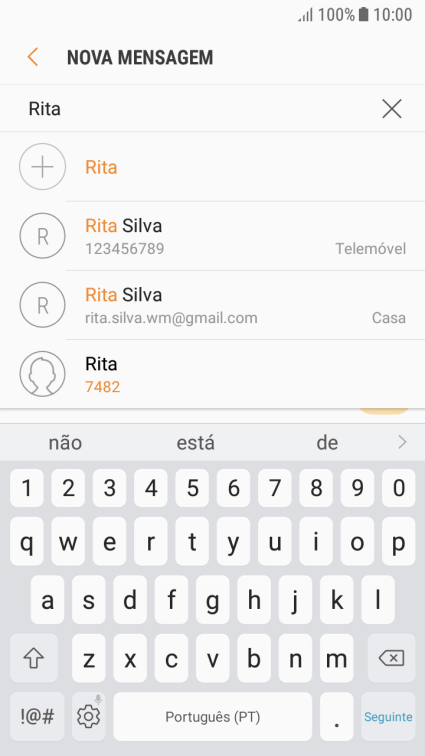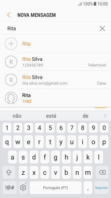 Prima a caixa de pesquisa e introduza as primeiras letras do nome do destinatário.