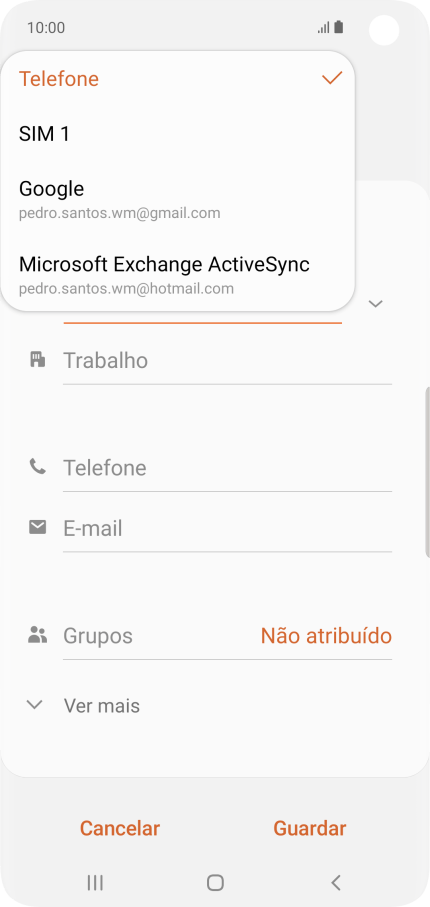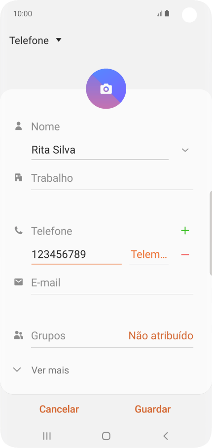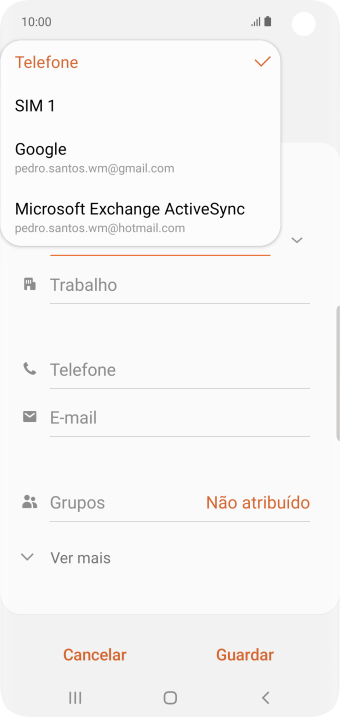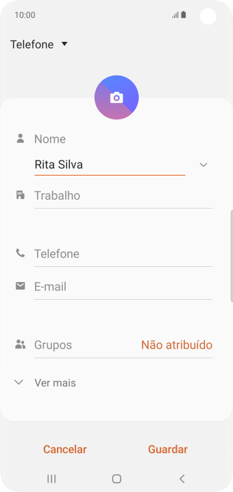Siga as indicações no ecrã para adicionar outras informações, como por ex., o endereço de e-mail ou um toque personalizado.