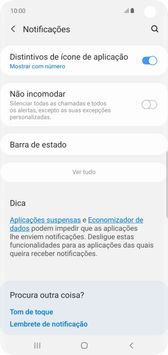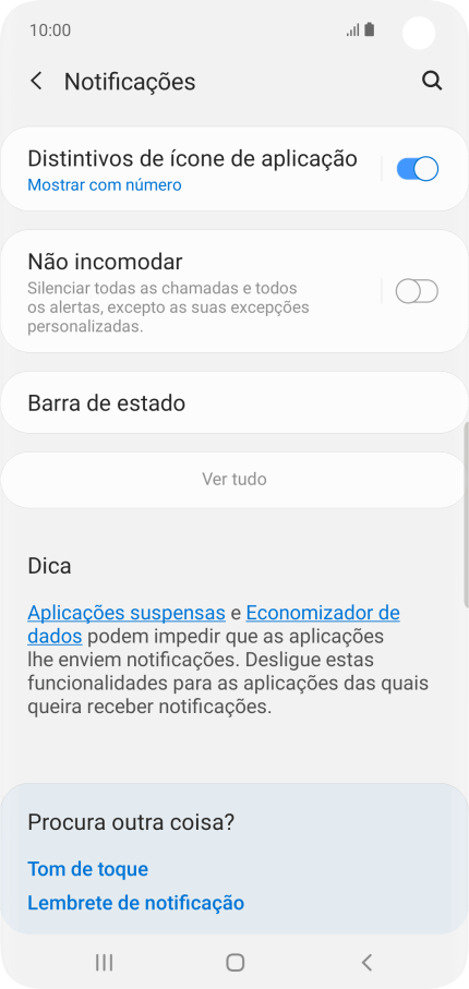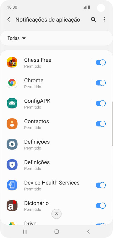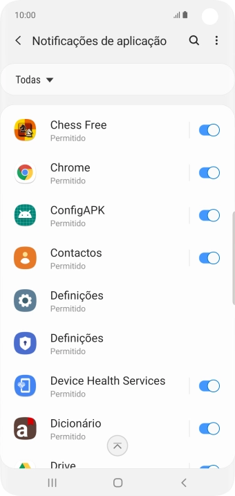 Prima o indicador junto à app pretendida para ativar ou desativar a função.