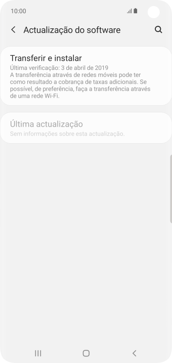Prima Transferir e instalar. Se existir uma nova versão de software disponível, será agora indicado no ecrã. Siga as indicações no ecrã para atualizar o software do telefone.