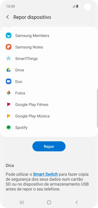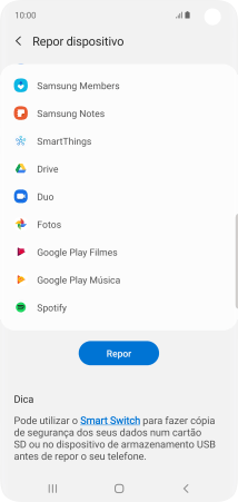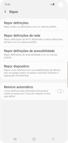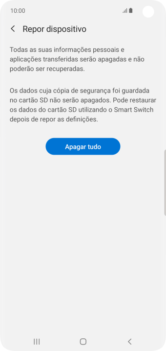 Prima Apagar tudo. Aguarde um momento enquanto o telefone restabelece as definições originais. Siga as indicações no ecrã para configurar o telefone de modo que este fique pronto a ser utilizado.