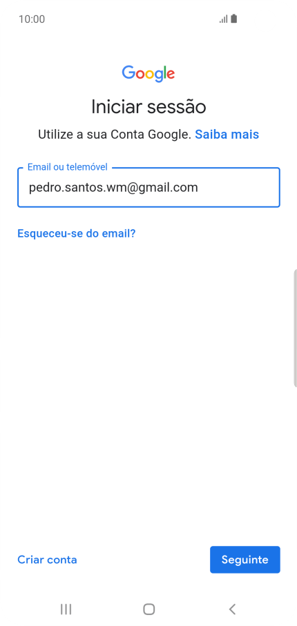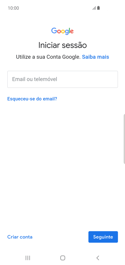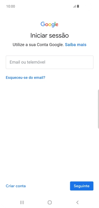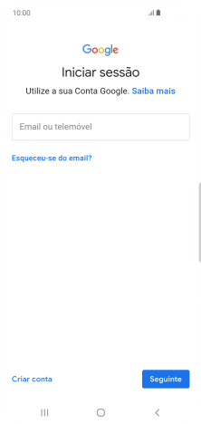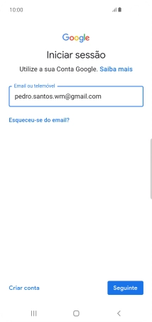 Se não tiver uma conta Google, prima Criar conta e siga as indicações no ecrã para criar uma conta.