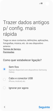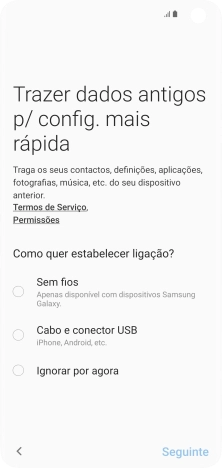 Prima o método de transferência pretendido e siga as indicações no ecrã para transferir conteúdo de outro telefone.