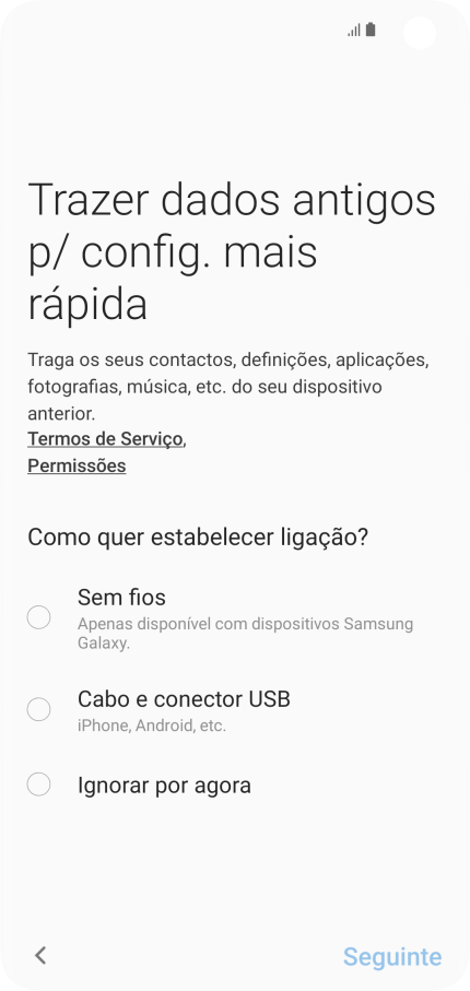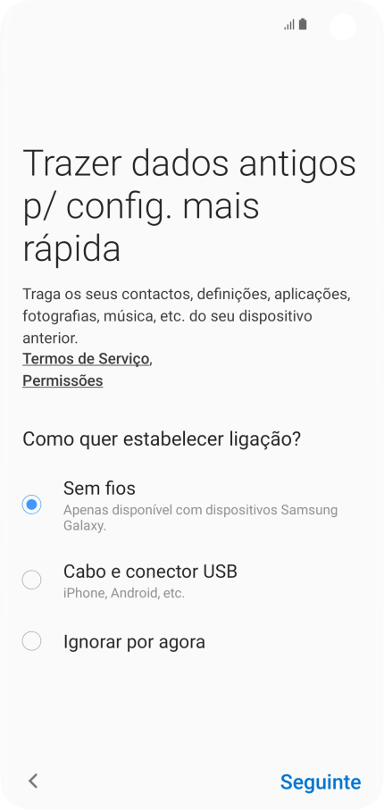Se for solicitado, deve fazer o download do Smart Switch para o seu telefone.
