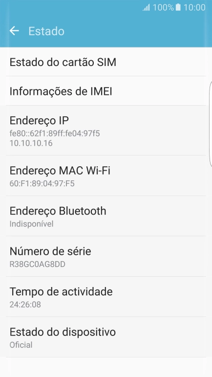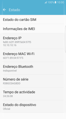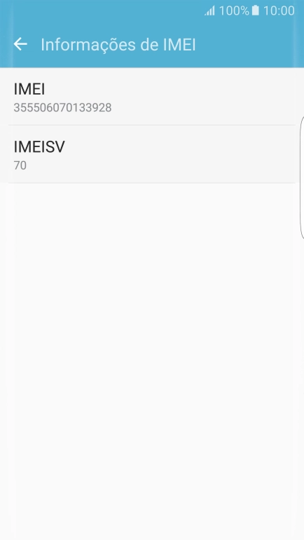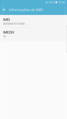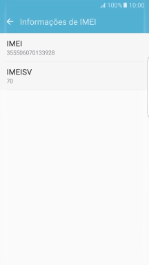O código IMEI é mostrado no ecrã.