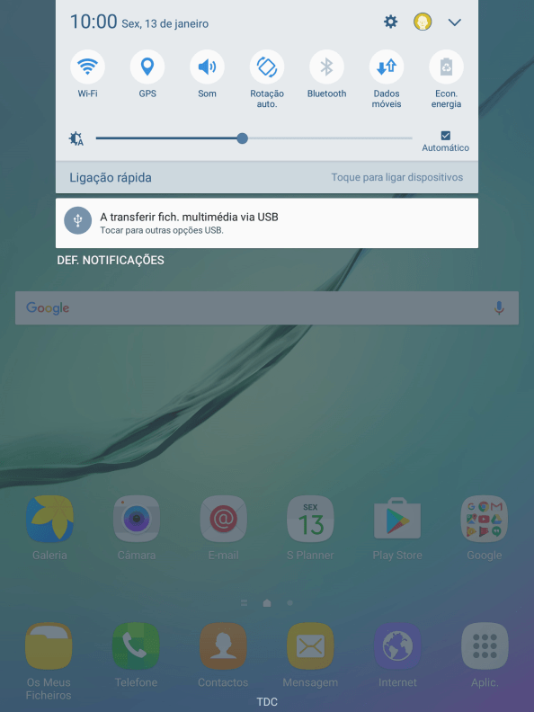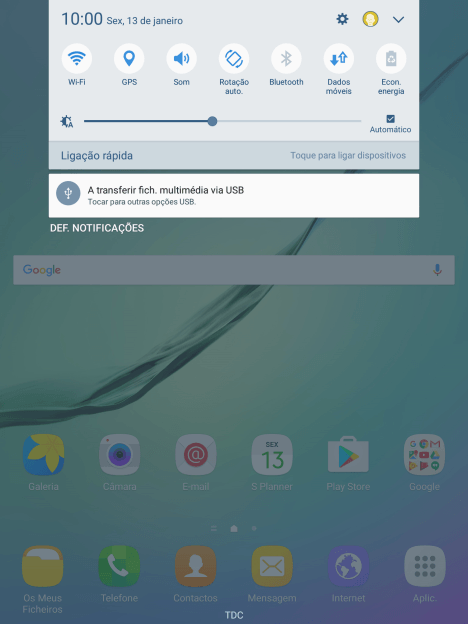 Deslize o dedo para baixo a partir do topo do ecrã.
