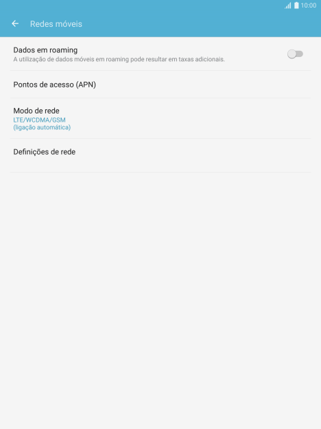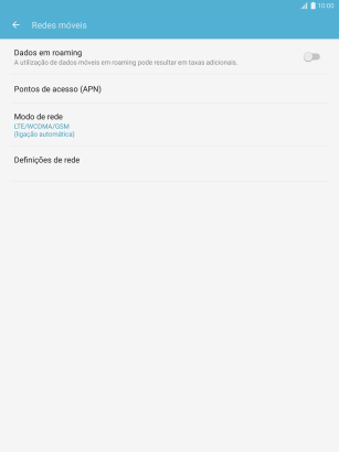 Prima o indicador junto a "Dados em roaming" para ativar ou desativar a função.