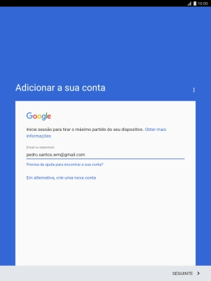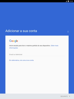 Se não tiver uma conta Google, prima Em alternativa, crie uma nova conta e siga as indicações no ecrã para criar uma conta.