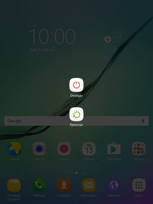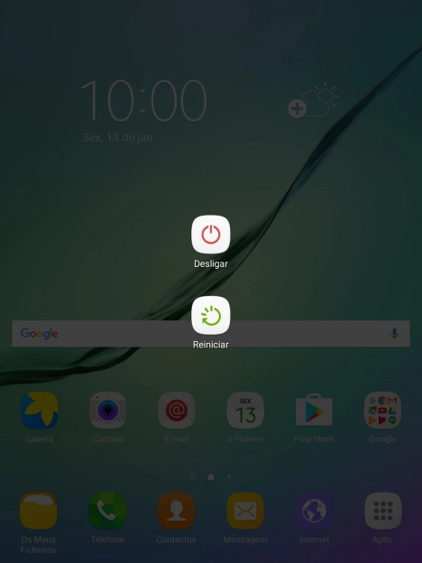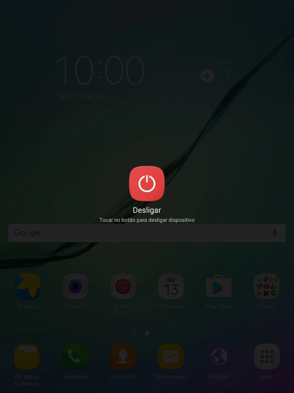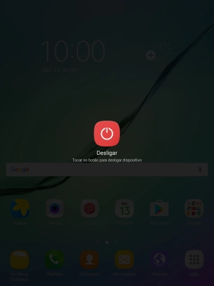 Mantenha premido o botão de ligar/desligar até aparecer um menu no ecrã.