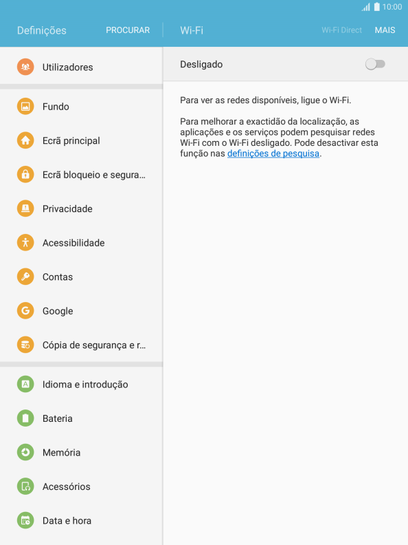 Prima o ícone de definições.