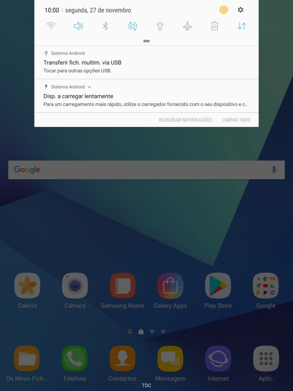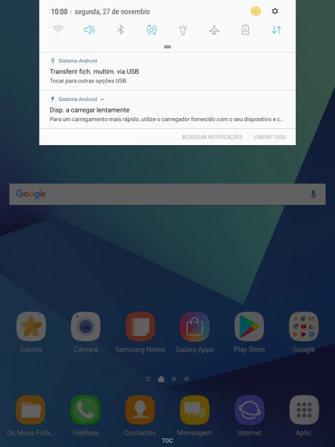 Deslize o dedo para baixo a partir do topo do ecrã.