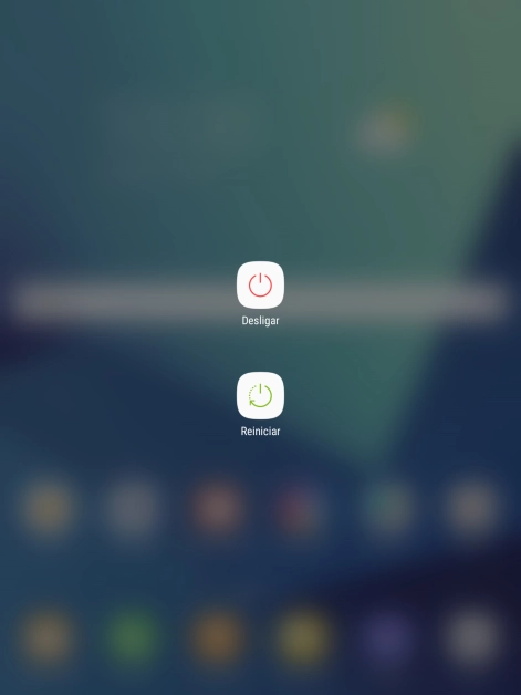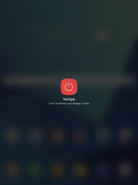 Mantenha premido o botão de ligar/desligar até aparecer um menu no ecrã.