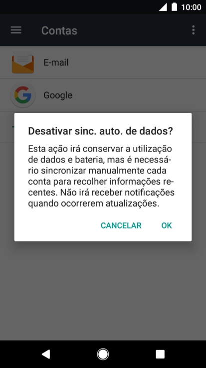 Prima Sincroniz. automática de dados para ativar ou desativar a função.