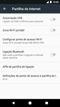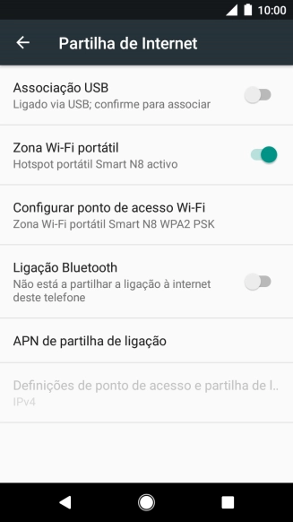 Prima o indicador junto a "Zona Wi-Fi portátil" para ativar a função.