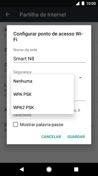 Prima WPA2 PSK para proteger o hotspot Wi-Fi com uma password.