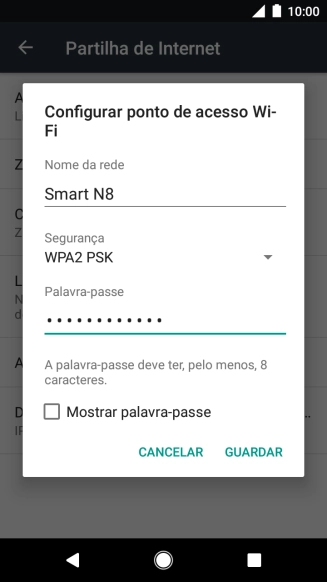 Introduza a password do seu hotspot Wi-Fi e estabeleça a ligação.