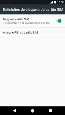 Prima o indicador junto a "Bloquear cartão SIM" para ativar ou desativar a função.