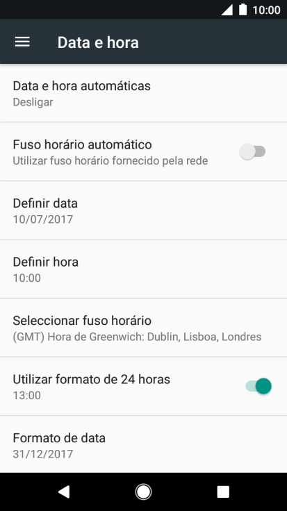 Prima o indicador junto a "Fuso horário automático" para ativar a função.