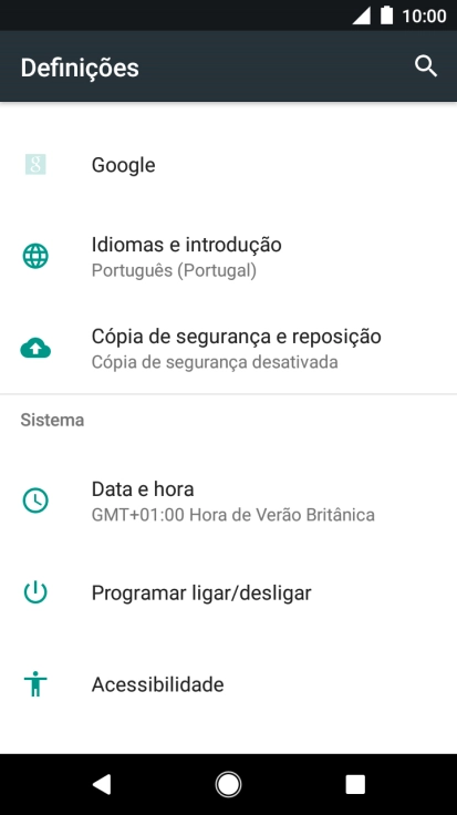 1. Procure "Data e hora"