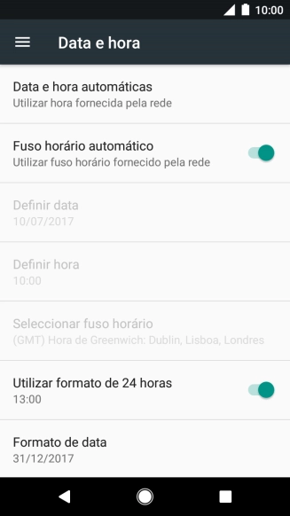 2. Ative a definição automática da data e hora