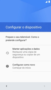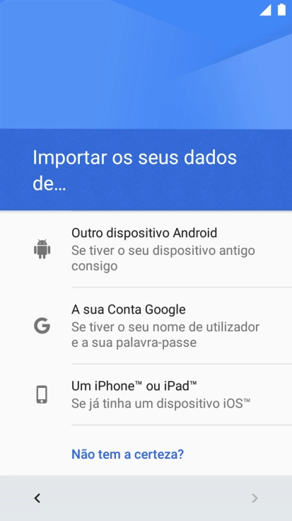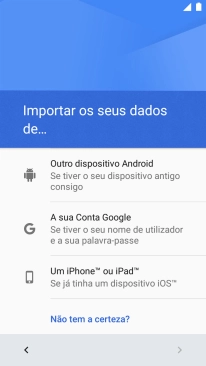 Prima a opção pretendida e siga as indicações no ecrã para transferir conteúdo de outro telefone e completar a ativação do telefone.