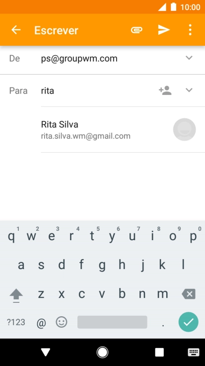 Prima o ícone para enviar quando terminar de escrever o seu e-mail.