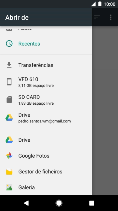 Deslize o dedo sobre o ecrã da esquerda para a direita.