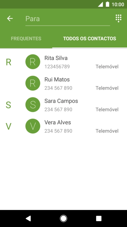 Prima a caixa de pesquisa e introduza as primeiras letras do nome do destinatário.