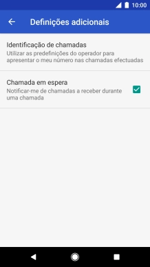 Prima o campo junto a "Chamada em espera" para ativar ou desativar a função.