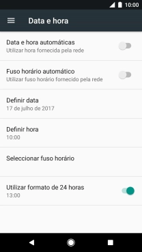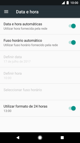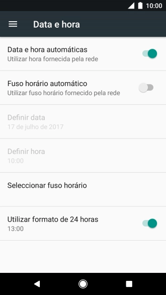 Prima o indicador junto a "Data e hora automáticas" para ativar a função.