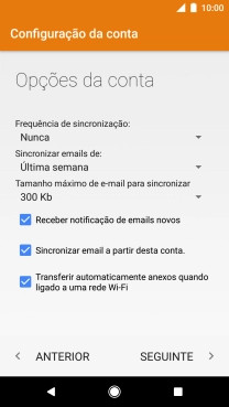 Prima Sincronizar email a partir desta conta. para ativar a função.