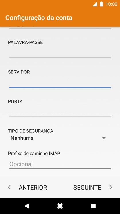 Prima o campo sob "SERVIDOR" e introduza o nome do servidor de receção do fornecedor de e-mail.