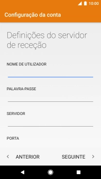 Prima o campo sob "NOME DE UTILIZADOR" e introduza o nome de utilizador da sua conta de e-mail.