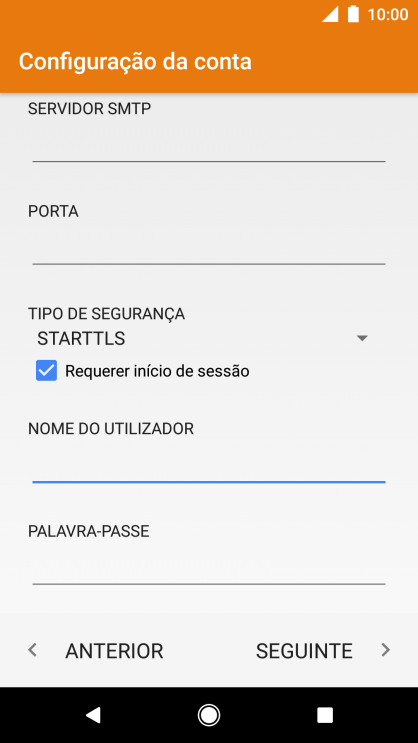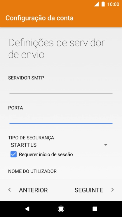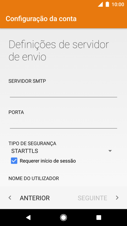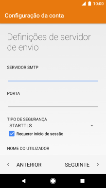 Prima o campo sob "SERVIDOR SMTP" e introduza o nome do servidor de envio do fornecedor de e-mail.
