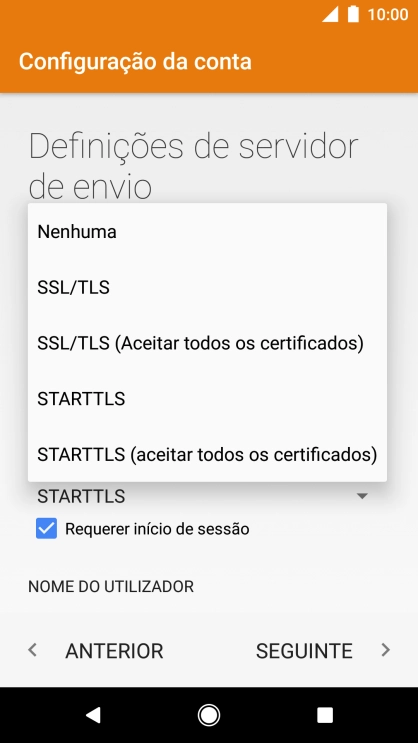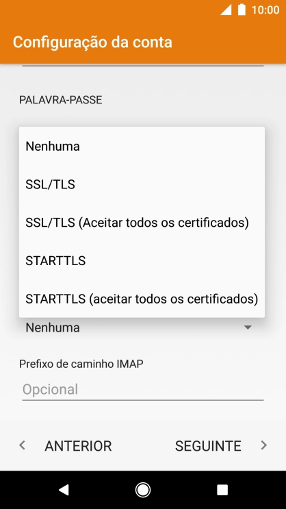 Prima a lista suspensa sob "TIPO DE SEGURANÇA".