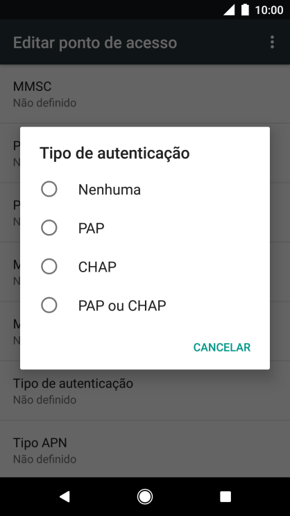 12. Escolha o tipo de nome do ponto de acesso (APN)