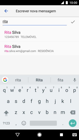 Prima a caixa de pesquisa e introduza as primeiras letras do nome do destinatário.