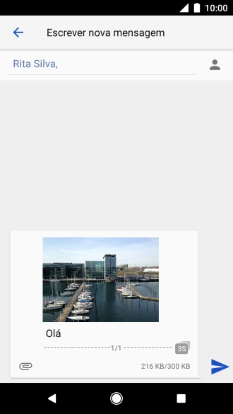 Prima o ícone para enviar quando terminar de escrever a sua mensagem multimédia.